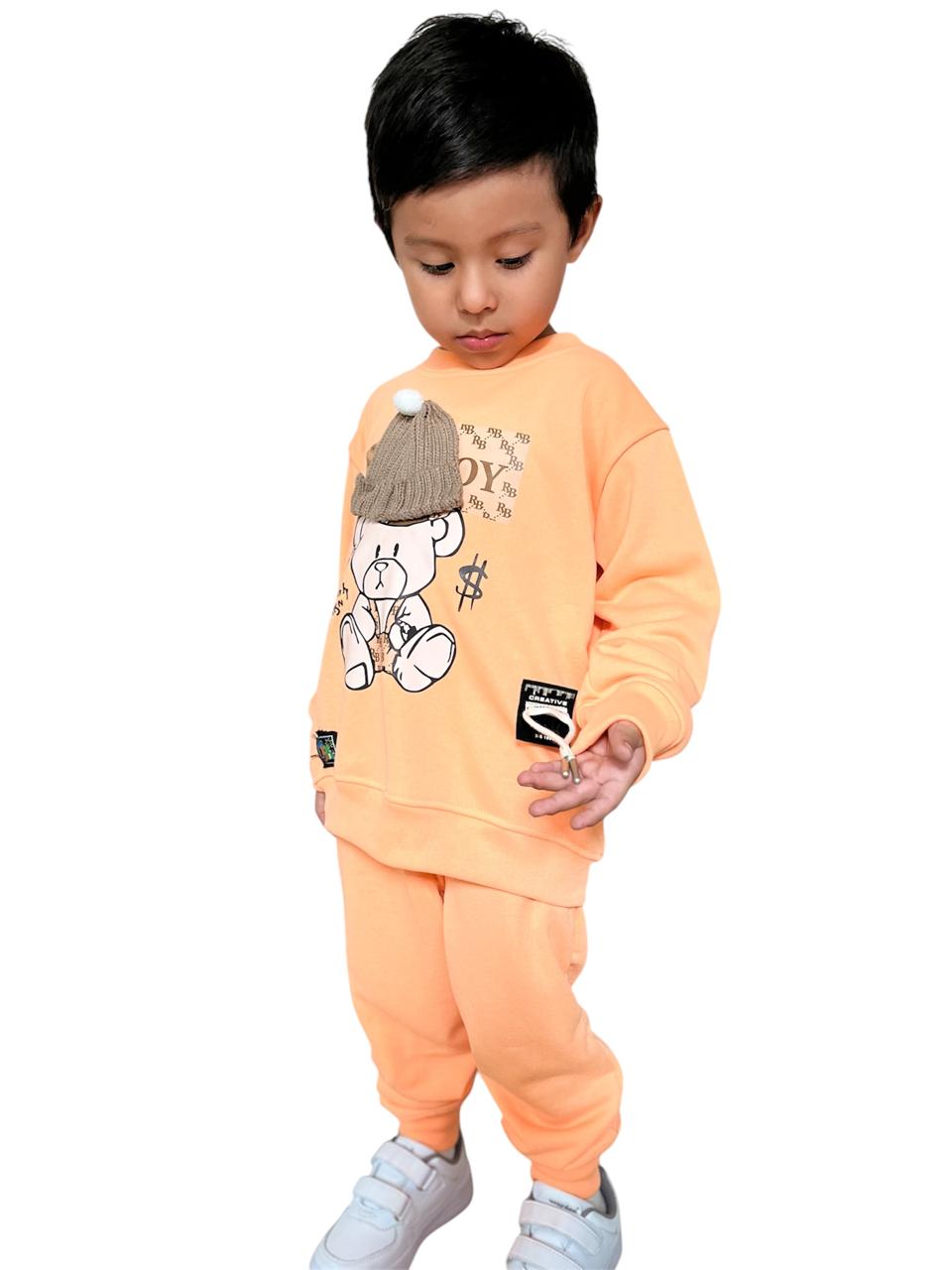 Sudadera fabricada en material burda, liviana y versátil para cualquier clima. Su diseño cómodo se adapta a los movimientos de los niños. Incluye pantalón jogger con bolsillos laterales rib en tobillos buzo con rib en cuello y puños para un ajuste perfecto.