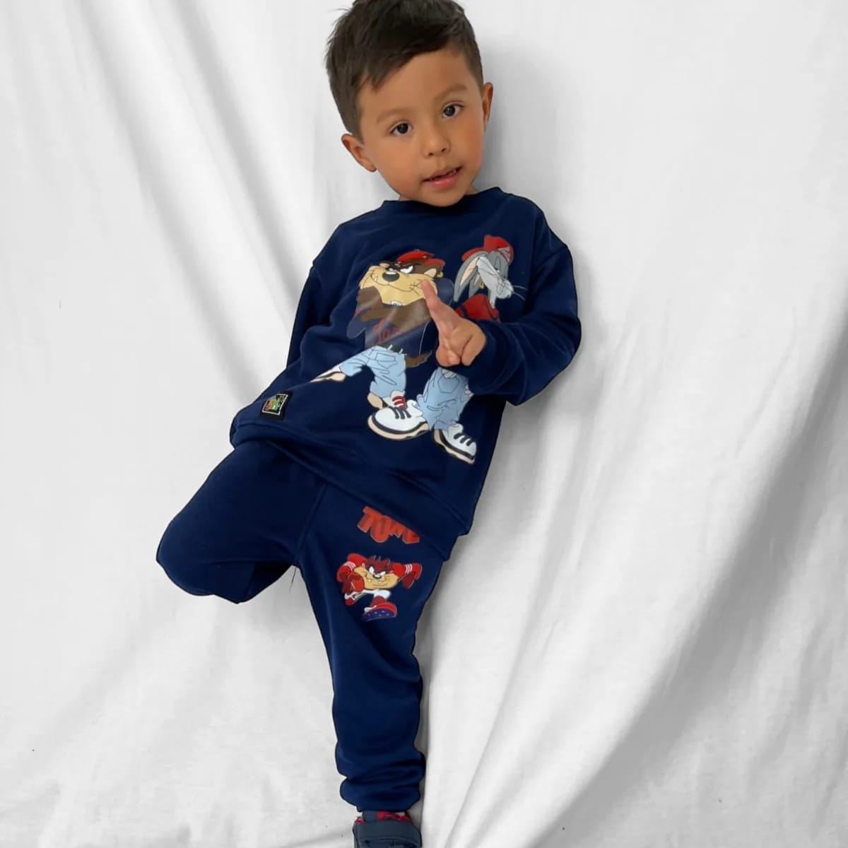 fabricada en material burda, liviana y versátil para cualquier clima. Su diseño cómodo se adapta a los movimientos de los niños. Incluye pantalón jogger con bolsillos laterales rib en tobillos buzo con rib en cuello y puños para un ajuste perfecto.